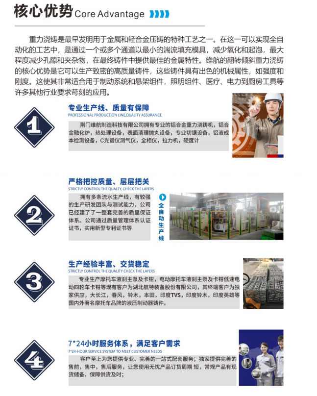 目前公司擁有半自動(dòng)重力鑄造線一條,配半自動(dòng)0-90°重力翻轉(zhuǎn)澆鑄機(jī)9臺(tái),日產(chǎn)能可達(dá)6500件標(biāo)準(zhǔn)卡鉗。